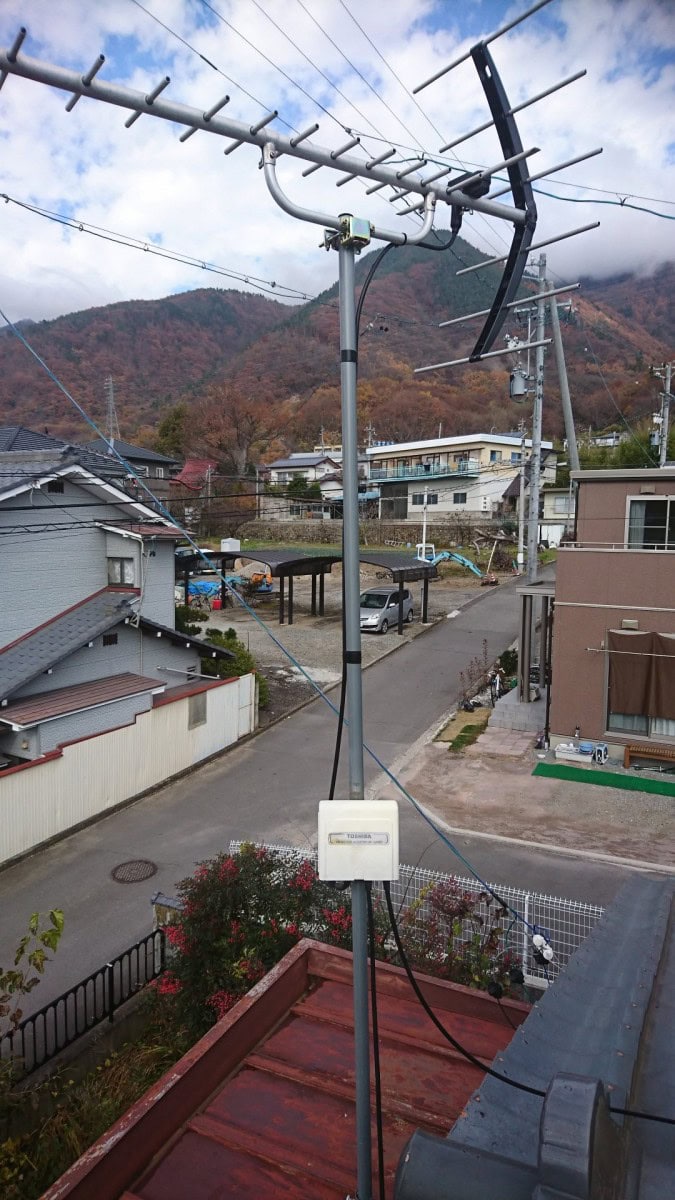ブースターを外した状態でレベルチェッカーで受信レベル確認したところ各チャンネル共73db利得を得ていたのでブースターを撤去。分配器を取り付けて終わりとします。